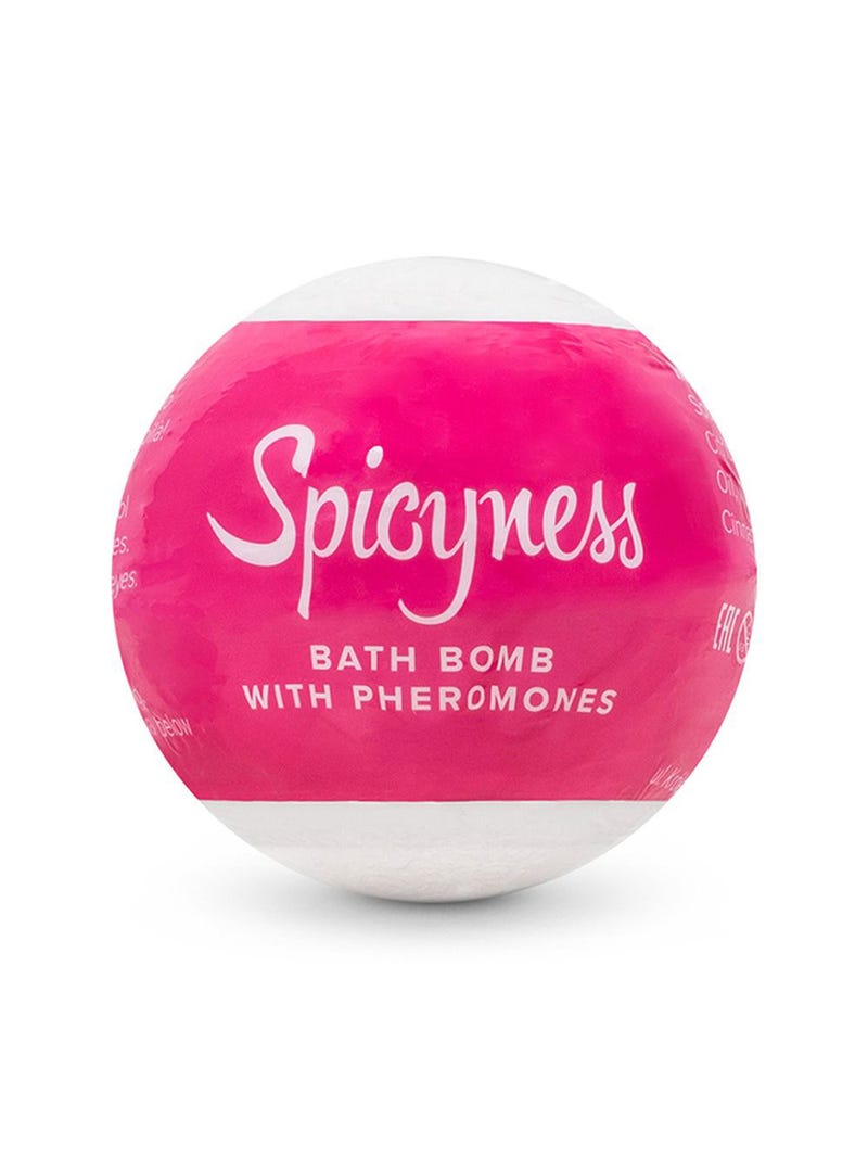 LaBoule de Bainaux Phéromones Spicynessde la marque Obsessiveest une boule effervescente au parfum oriental et fleuriqui apportera une ambiance romantique à vos bains à deux.