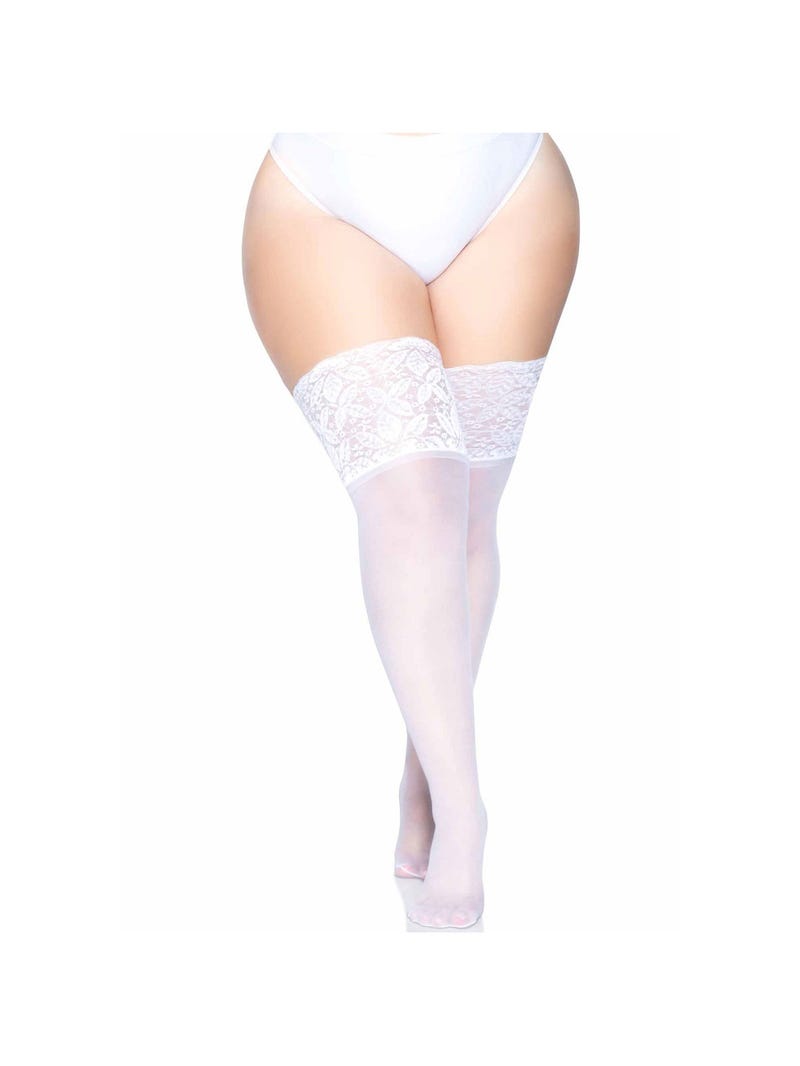 Scopri le Autoreggenti 9750Q Bianche Taglie Forti diLeg Avenue, delle calze extra sottili per taglie forti!